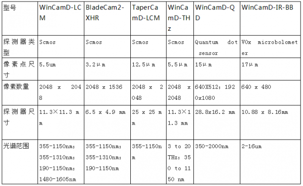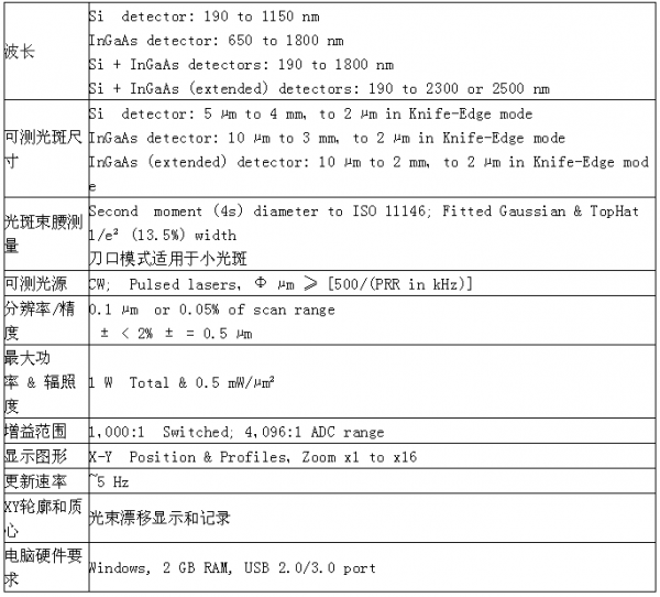 Dataray公司基于相機(jī)的光斑輪廓儀的主要參數(shù)