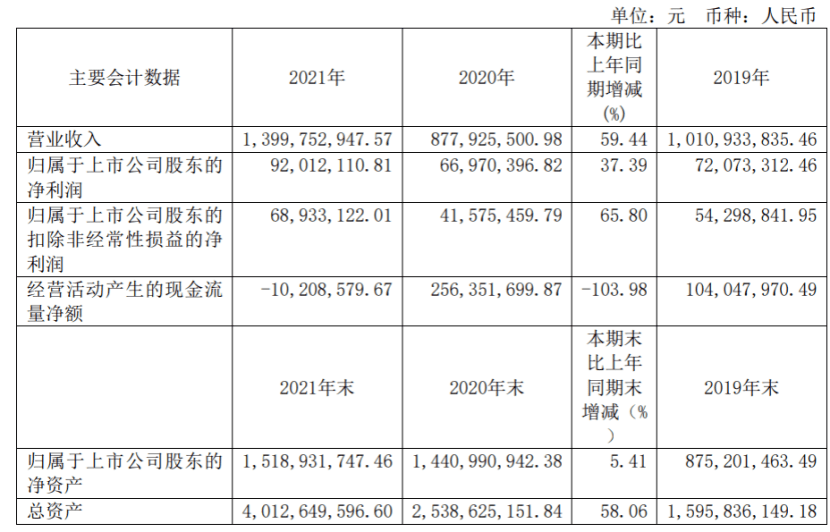 4月18日,深圳市聯(lián)贏激光股份有限公司(以下簡(jiǎn)稱“聯(lián)贏激光”)發(fā)布2021年年報(bào)。報(bào)告顯示,2021年聯(lián)贏激光實(shí)現(xiàn)營(yíng)業(yè)收入14.00億元,同比增長(zhǎng)59.44%,歸屬于上市公司股東的凈利潤(rùn)為9201.21萬(wàn)元,同比增長(zhǎng)37.39%,每股收益為0.3100元。