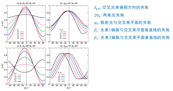 盡管1992年Dubois與其合作者在理論上已提出此類SL-SBS過程,之后湖南大學和國防科技大學合作團隊進一步研究了多束激光激發(fā)SL-SBS過程的色散關系和增長率,但以往的工作基于入射光束的對稱性假設,主要關注共用散射光沿多束入射激光對稱軸方向上傳播的情況。在實際的情況下,由于不同光束之間的物理參數不可避免地存在差異,必然會對SL-SBS過程的增長模式產生影響。為了更好地理解SL-SBS過程,近期北京應用物理與計算數學研究所的邱捷博士和郝亮特聘研究員基于兩交叉光束下SL-SBS過程對流增長的三維耦合模型,研究了光束交叉角、偏振方向、中心波長等關鍵物理參數對SL-SBS過程的影響。
