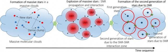 天文觀測(cè)缺乏觀察這些過(guò)程所需的空間分辨率,而數(shù)值模擬也無(wú)法處理云層和超新星遺跡之間復(fù)雜的互動(dòng)關(guān)系。因此,以這種方式觸發(fā)和形成新的恒星仍然大多籠罩在神秘之中。