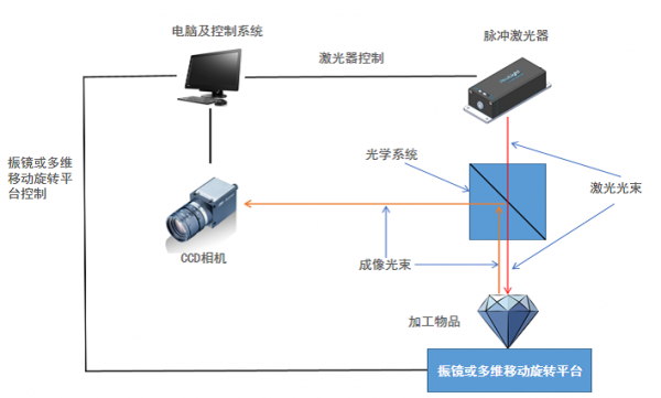 硬脆材料微加工通常由激光器、CCD相機(jī),激光準(zhǔn)直聚焦及成像光學(xué)系統(tǒng)、振鏡控制系統(tǒng)或多維移動(dòng)旋轉(zhuǎn)平臺(tái)、輸入/輸出控制模塊、計(jì)算機(jī)及控制軟件組成。利用激光高能量特性,通過(guò)光子與材料的相互作用實(shí)現(xiàn)對(duì)材料的打標(biāo)、打孔、劃線、切割、內(nèi)雕等加工;因其具有高效率、高精度、非接觸式等優(yōu)點(diǎn),廣泛應(yīng)用于微電子、微機(jī)械和微光學(xué)加工等領(lǐng)域。