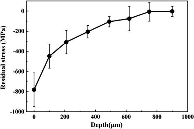圖32 LSP處理SiC陶瓷的深度殘余應(yīng)力分布。
