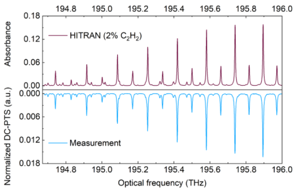 圖2.乙炔氣體寬波段雙光梳光熱光譜