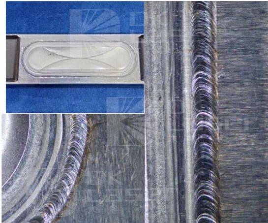 其次,芯徑為14μm的單模激光器的熔深穩(wěn)定。在-3~2.5mm的離焦量范圍內(nèi),熔深變化只有±0.25mm,可以完美地解決由于熔深不穩(wěn)定造成的虛焊問題,具有更寬的工藝窗口。