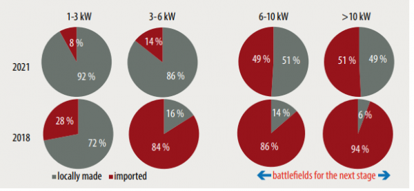 圖4 2018年與2021中國高功率光纖激光器國產(chǎn)化趨勢。