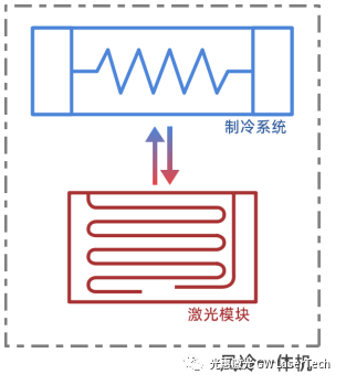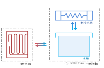 傳統(tǒng)的組裝式水冷手持激光焊接機(jī)是把冷水機(jī)和激光器組裝在一個(gè)大的機(jī)柜里面,通過(guò)冷水機(jī)來(lái)給激光器散熱:先通過(guò)制冷系統(tǒng)給水箱里的水制冷,再用循環(huán)的冷卻水帶走激光器產(chǎn)生的熱量。