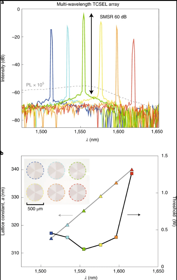 根據(jù)他們在《自然光子學》上發(fā)表的報告,TCSEL具有10 W峰值功率、亞度光束發(fā)散、60 dB邊模抑制比和二維(2D)多波長陣列,激光功率為1550nm,這是最重要的通信和眼睛安全波長。它還可以在任何其他波長范圍內(nèi)工作,并有望用于多種應用,包括用于人臉識別、自動駕駛和虛擬現(xiàn)實的激光雷達。
