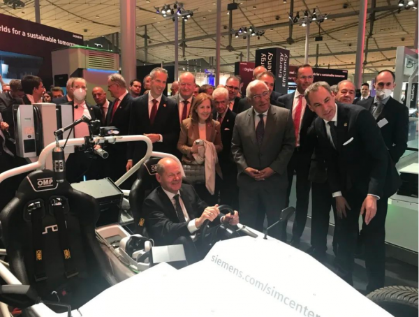 ▲ 德國總理朔爾茨到訪西門子展臺,并親自體驗SimRod