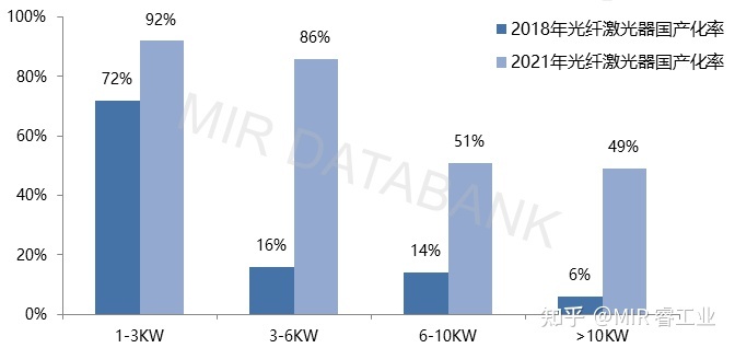 1-3KW:國產(chǎn)廠商近年來進一步吞并外資廠商市場份額,基本實現(xiàn)國產(chǎn)化替代。