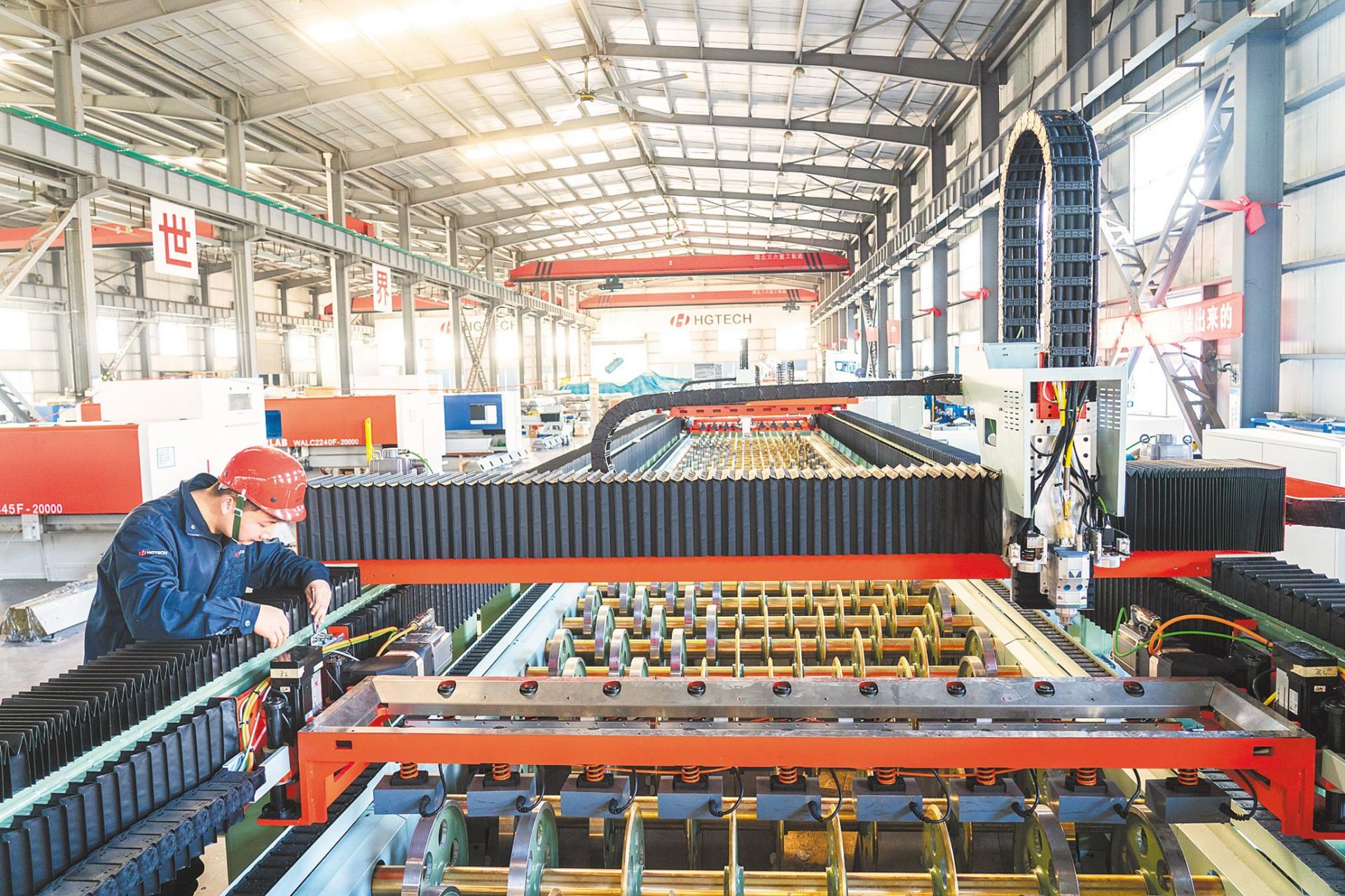 華工激光產(chǎn)業(yè)園內(nèi),正在組裝生產(chǎn)大型激光加工設(shè)備。