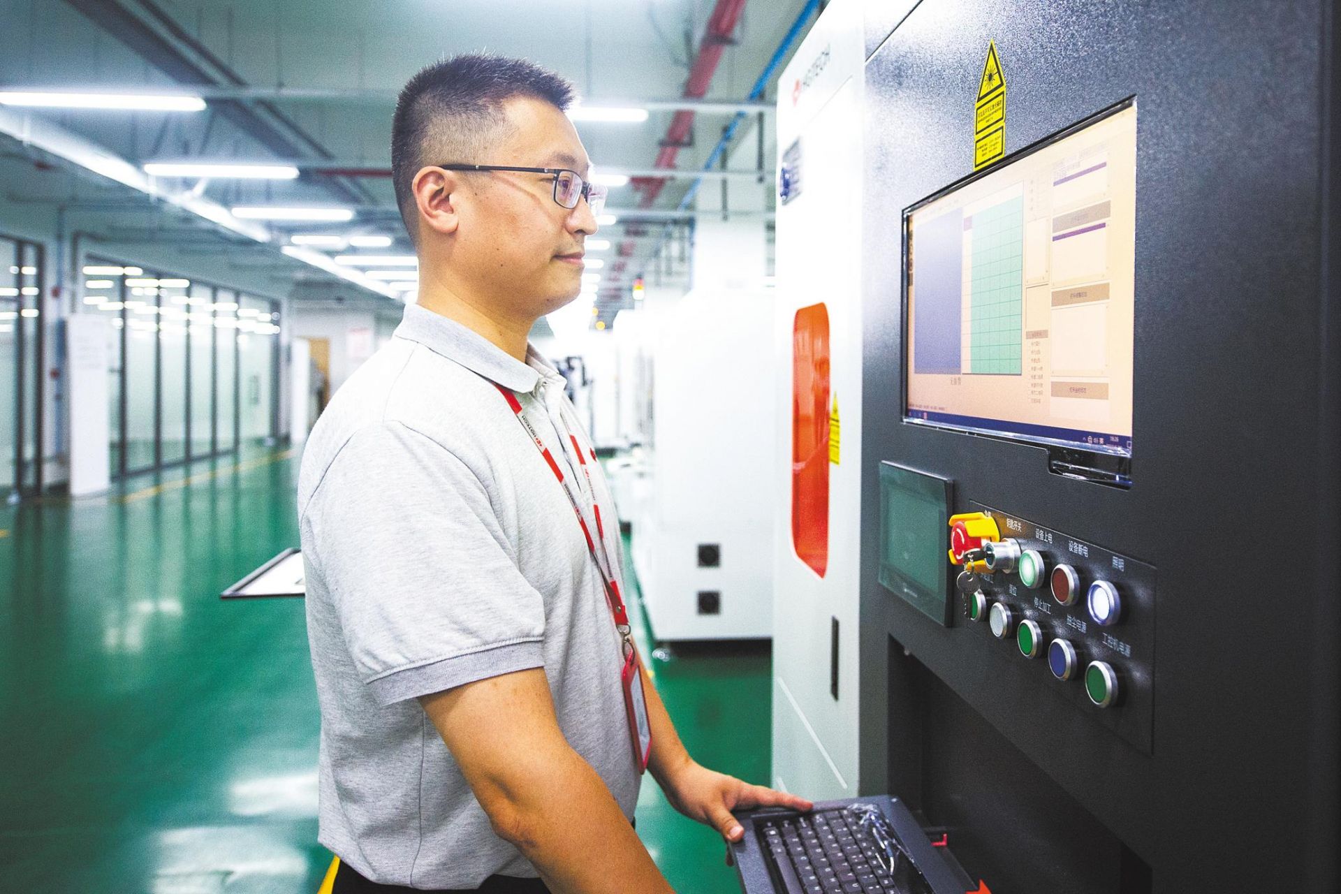 華工激光副總工程師程偉正在操作公司新近開發(fā)的IC載板激光刻蝕裝備。