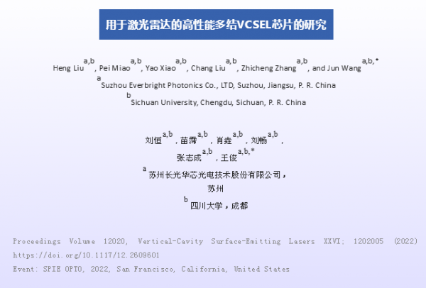 [3] Zhou, D., Zhao, B., Fan, Y., Chong, H., Wang, G., Wang, P., Yuan, K., Li, L., en Zah, C., and Liu, X.,“Research on vcsel transmitter modules for intelligent driving,” Proc. SPIE 11891, 118910S (2021).