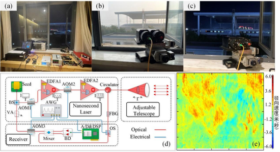 為了實現(xiàn)“看的遠、看的細,測的快、測的準(zhǔn)”的高時空分辨測風(fēng)激光雷達,團隊通過在激光光源、光學(xué)收發(fā)系統(tǒng)、高速數(shù)據(jù)采集電路和數(shù)據(jù)處理算法上對激光雷達進行全面優(yōu)化,并在時頻分析、脈沖編碼基礎(chǔ)上提出一種新的反演算法,大大提高了風(fēng)場反演精度和穩(wěn)健性,最終實現(xiàn)了一套全國產(chǎn)化的“產(chǎn)品級”測試樣機。