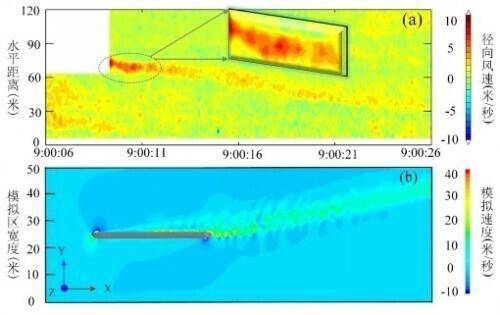 為進(jìn)一步測試?yán)走_(dá)觀測性能和環(huán)境適應(yīng)性,科研團(tuán)隊(duì)利用該雷達(dá)在高鐵站實(shí)地測量了高速列車尾流中的風(fēng)場結(jié)構(gòu)。雷達(dá)在無人值守下連續(xù)穩(wěn)定工作超過100小時(shí),獲得了3米和0.1秒高時(shí)空分辨率下的350km/h的高鐵尾流連續(xù)觀測。