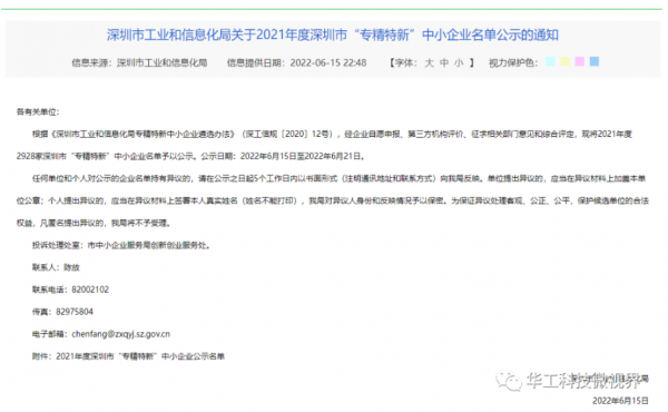 近日,深圳市工業(yè)和信息化局公示了2021年度深圳市“專精特新”中小企業(yè)名單,華工科技子公司深圳華工新能源裝備有限公司榮登榜單。