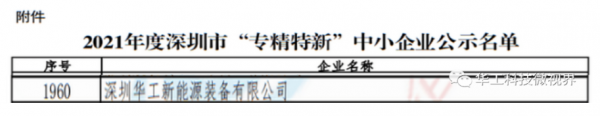 深圳華工新能源榮獲深圳市“專精特新”企業(yè)認(rèn)定