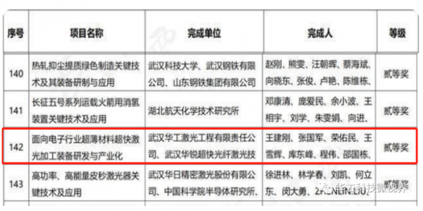 日前,湖北省“加快推進(jìn)武漢具有全國(guó)影響力的科技創(chuàng)新中心建設(shè)暨湖北省科技創(chuàng)新大會(huì)”在武漢召開(kāi),會(huì)上正式公布了2021年度湖北省科學(xué)技術(shù)獎(jiǎng)獲獎(jiǎng)名單。其中,由華工科技核心子公司華工激光參與完成的“面向電子行業(yè)超薄材料超快激光加工裝備研發(fā)與產(chǎn)業(yè)化”項(xiàng)目榮獲科學(xué)技術(shù)進(jìn)步獎(jiǎng)二等獎(jiǎng)。