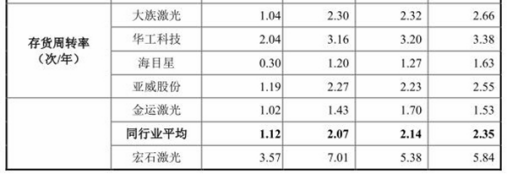 報告期內,公司存貨周轉率分別為5.84次/年、5.38次/年、7.01次/年和3.57次/年,同行業(yè)可比公司存貨周轉率均值分別為2.35次/年、2.14次/年、2.07次/年、1.12次/年。