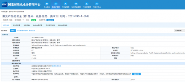 根據(jù)國(guó)家標(biāo)準(zhǔn)化管理委員會(huì)標(biāo)準(zhǔn)制修訂計(jì)劃,TC284已組織完成了激光產(chǎn)品的安全 第1部分:設(shè)備分類(lèi)、要求國(guó)家標(biāo)準(zhǔn)的征求意見(jiàn)稿,于2022年7月21日開(kāi)始公開(kāi)征求意見(jiàn)。