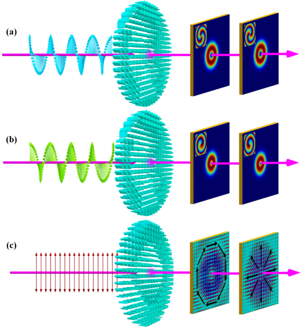 除了只考慮單個平面上的偏振和渦旋分布,也有一些文獻報道了在多個平面上操控光場的能力。然而,現(xiàn)有的這些方案要么是采用體積龐大的空間光調制器實現(xiàn),要么需要復雜的光路以及濾波操控才能實現(xiàn)。這些在實際應用特別是在太赫茲波段會造成很大的限制。