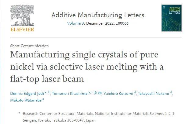 2022年7月27日,NIMS(國立材料科學(xué)研究所)和大阪大學(xué)工程研究生院,通過用大半徑平頂激光束照射鎳粉,使用選擇性激光熔化 (SLM) ,成功制造出晶體缺陷很少的鎳單晶體。
