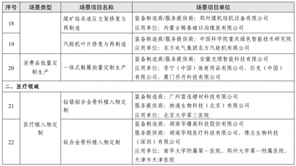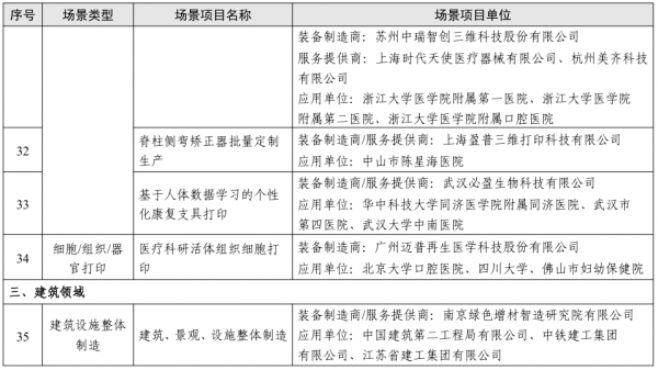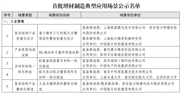 36項(xiàng),工信部首批增材制造典型應(yīng)用場(chǎng)景名單公示