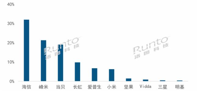 2022H1中國大陸家用激光投影市場出貨量品牌份額(數(shù)據(jù)來源:洛圖科技(RUNTO), 單位:%)