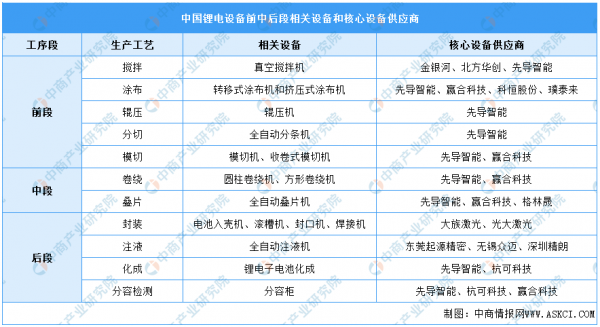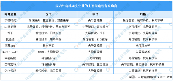 前段核心設(shè)備供應(yīng)商為先導(dǎo)智能、贏合科技、科恒股份和璞泰來(lái)。