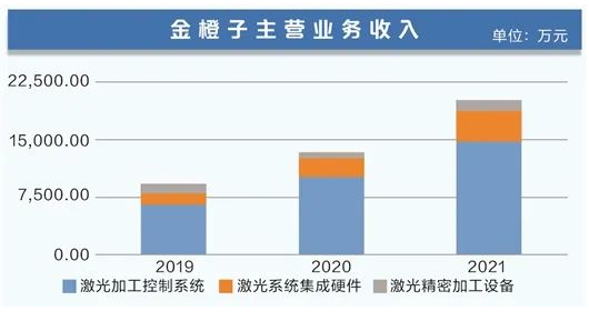 截至目前,金橙子產(chǎn)品系列已覆蓋激光標(biāo)刻、激光切割、激光焊接、激光清洗等多個(gè)領(lǐng)域,擁有華工科技等優(yōu)質(zhì)客戶群體。2019年~2021年,公司主營(yíng)業(yè)務(wù)收入分別為0.92億元、1.34億元、2.02億元,其中激光加工控制系統(tǒng)收入占比分別為70.22%、76.14%、72.97%。同期,公司凈利潤(rùn)分別為1605.55萬元、4019.70萬元、5262.53萬元,保持高速增長(zhǎng)。
