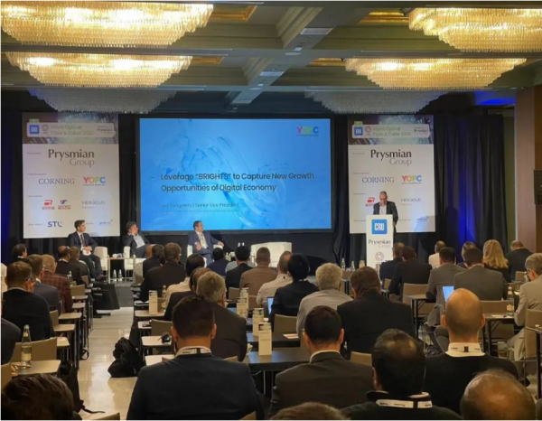 作為全球領(lǐng)先的光通信企業(yè),同時也是世界光纖光纜大會多年來的合作伙伴及主要贊助商,長飛光纖光纜股份有限公司(以下簡稱:“長飛公司”,股票代碼:601869.SH、06869.HK)今年繼續(xù)參與這一全球性的行業(yè)盛會。11月8日,長飛公司執(zhí)行董事兼總裁莊丹受邀與歐洲普睿司曼、美國康寧等國際巨頭高層進(jìn)行圓桌論壇,暢談行業(yè)態(tài)勢,共話產(chǎn)業(yè)未來;高級副總裁Jan.Bongaerts代表長飛公司在大會上作《構(gòu)筑“BRIGHTS”數(shù)字經(jīng)濟(jì)全光底座,迎接行業(yè)發(fā)展新周期》主題演講。