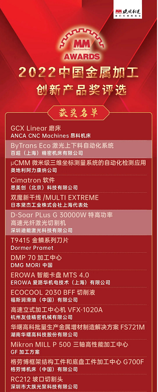 百超、百超迪能雙品牌同獲“2022中國(guó)金屬加工創(chuàng)新產(chǎn)品獎(jiǎng)”