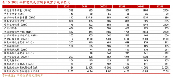 光伏激光設(shè)備對(duì)振鏡需求預(yù)計(jì)至少達(dá)3億元以上。保守假設(shè)2025年光伏(電池片+組件)激光設(shè)備市場(chǎng)規(guī)模達(dá)80億元,按照振鏡控制系統(tǒng)4%的價(jià)值量占比計(jì)算,2025年光伏激光設(shè)備需求或達(dá)3.2億元。