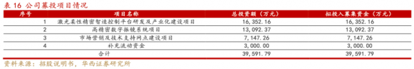 公司募投項(xiàng)目主要為“激光柔性精密智造控制平臺(tái)研發(fā)及產(chǎn)業(yè)化建設(shè)項(xiàng)目”、“高精密數(shù)字振鏡系統(tǒng)項(xiàng)目”、“市場(chǎng)營(yíng)銷(xiāo)及技術(shù)支持網(wǎng)點(diǎn)建設(shè)項(xiàng)目”和“補(bǔ)充流動(dòng)資金”。