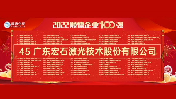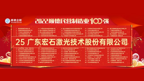 宏山激光榮登2022順德企業(yè)100強(qiáng)暨民營(yíng)制造業(yè)100強(qiáng)