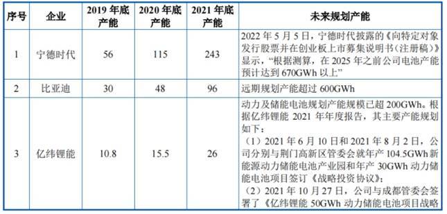 同時(shí),得益于新能源汽車、儲能及消費(fèi)電子市場的快速發(fā)展,相關(guān)鋰電池生產(chǎn)企業(yè)紛紛制定和實(shí)施擴(kuò)產(chǎn)計(jì)劃,比如寧德時(shí)代、國軒高科、億緯鋰能等,國內(nèi)主要?jiǎng)恿﹄姵仄髽I(yè)產(chǎn)能規(guī)劃情況(GWh)如下: