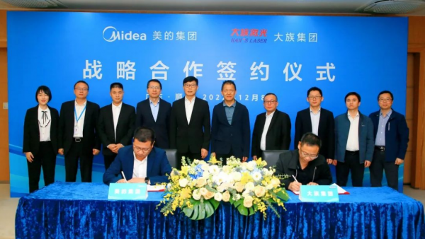2022年12月8日,美的集團與大族集團在美的總部簽署了戰(zhàn)略合作框架協(xié)議。此次簽約,雙方將在工業(yè)自動化、制造智能化、樓宇數(shù)字化等多個領域開展全面深入的合作,標志著雙方開啟全面深化戰(zhàn)略合作伙伴關系的新篇章。