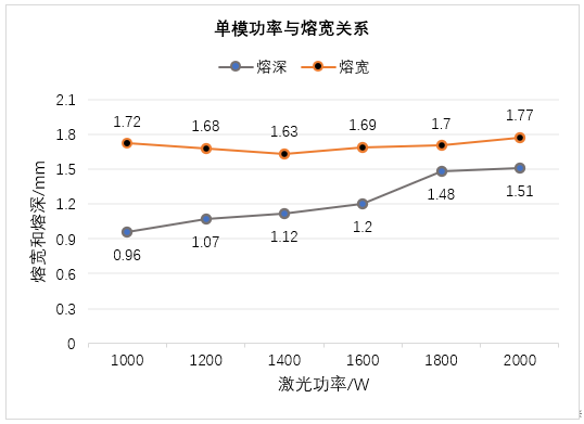 測試熔深與熔寬的隨激光功率的變化情況