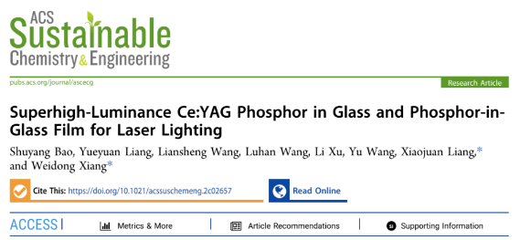近日,溫州大學(xué)向衛(wèi)東教授課題組采用簡(jiǎn)便、通用的共燒方法在較低溫度下制備了YAG: Ce PiG。確定了最佳燒結(jié)溫度(900 ℃)和最佳玻璃粉粒徑(50 μm)。優(yōu)化后的樣品具有較高的量子效率。為了獲得白光并獲得高的激光飽和閾值,將優(yōu)化后的YAG: Ce PiG通過簡(jiǎn)單的方法涂敷在藍(lán)寶石襯底上獲得YAG: Ce PiGF。結(jié)果表明,熒光粉與玻璃基體的腐蝕反應(yīng)輕微。因此,YAG: Ce PiG和YAG: Ce PiGF具有優(yōu)異的熱發(fā)光性能。優(yōu)化后的YAG: Ce PiG的LE為240 lm/W (2.18 W/mm2),YAG: Ce PiGF的LE為251.5 lm/W (激光功率密度為8 W/mm2時(shí))。這些結(jié)果為高功率和高亮度LD照明提供了巨大潛力。本文的研究成果為新一代高功率、高亮度激光照明技術(shù)的發(fā)展提供了系統(tǒng)的研究思路。