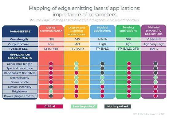 有許多應用需要獨特的激光系統(tǒng)規(guī)格,這也會對EEL組件產(chǎn)生影響。此外,在技術(shù)系統(tǒng)層面,直接二極管、光纖激光器、DPSSL、OPSL和氣體激光器之間存在著強大的競爭。