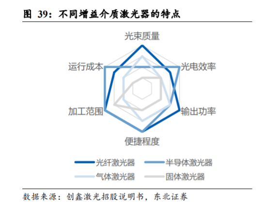 設(shè)備商將激光器、運(yùn)控系統(tǒng)、激光加工頭、冷卻系統(tǒng)、機(jī)械件以及電源等零部件進(jìn) 行集成,即可生產(chǎn)出激光加工設(shè)備。