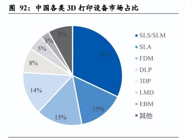 艾瑞咨詢發(fā)布的報(bào)告顯示,中國(guó)的 3D 打印設(shè)備市場(chǎng)中與激光相關(guān)的設(shè)備(SLS、 SLM、SLA、LMD)占比達(dá)到 52%,其中 SLM 是工業(yè)領(lǐng)域金屬 3D 打印最為常用 的設(shè)備。3D 打印的工業(yè)級(jí)應(yīng)用占比達(dá)到 65%-70%,目前有超半數(shù)應(yīng)用在航空航天 領(lǐng)域,這是一方面是因?yàn)橐恍┖娇蘸教炝悴考Y(jié)構(gòu)復(fù)雜,傳統(tǒng)方式很難實(shí)現(xiàn)加工制 造;另一方面是因?yàn)楹娇蘸教煺麢C(jī)產(chǎn)品價(jià)值量高,對(duì)單個(gè)零部件價(jià)格敏感度較低, 對(duì) 3D 打印這種加工方式的接受程度高。目前的 3D 打印較為適合航空航天等領(lǐng)域 小批量、定制化生產(chǎn)特點(diǎn),能夠解決輕量化、功能化等設(shè)計(jì)要求,但隨著 3D 打印 技術(shù)發(fā)展與成本控制,其未來(lái)有望應(yīng)用到更大規(guī)模的工業(yè)化生產(chǎn)中。