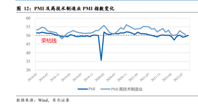 全局來(lái)看,制造業(yè)是立國(guó)之本、強(qiáng)國(guó)之基,制造業(yè)高質(zhì)量發(fā)展,是我國(guó)經(jīng)濟(jì)高質(zhì)量 發(fā)展的重中之重。國(guó)家統(tǒng)計(jì)局?jǐn)?shù)據(jù)顯示,2021 年我國(guó)制造業(yè)增加值達(dá)到 9.8%,制造 業(yè)增加值占 GDP 比重達(dá)到 27.4%,規(guī)模達(dá)到 4.23 萬(wàn)億美元,連續(xù) 12 年位居世界首 位。此外,近年來(lái),我國(guó)高技術(shù)制造業(yè)(包含計(jì)算機(jī)及辦公設(shè)備制造業(yè)、電子及通 信制造業(yè)、航空航天器及設(shè)備制造業(yè)、醫(yī)藥制造業(yè))發(fā)展迅速,占規(guī)模以上工業(yè)增 加值的比重逐年上升,2020 年和 2021 年比重均超過(guò) 15%,表明我國(guó)制造業(yè)產(chǎn)業(yè)結(jié) 構(gòu)不斷優(yōu)化升級(jí)。從宏觀經(jīng)濟(jì)指標(biāo)來(lái)看,PMI 指數(shù)經(jīng)歷了今年 3 月以來(lái)上海疫情和 全國(guó)限電等不利因素?cái)_動(dòng)后,在 9 月重回榮枯線以上。而制造業(yè)固定資產(chǎn)投資完成 額在 2020 年疫情初期出現(xiàn)較大幅度的下降后,2021 年以來(lái)始終維持在較高增速水 平,這些均表明制造業(yè)整體景氣度呈現(xiàn)復(fù)蘇態(tài)勢(shì)。此外,高技術(shù)制造業(yè) PMI 指數(shù)在 大部分時(shí)間均高于 PMI 指數(shù),且無(wú)懼外部不利因素?cái)_動(dòng),長(zhǎng)期處于榮枯線以上,表 明我國(guó)先進(jìn)制造景氣度持續(xù)向好。