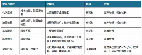 激光打標(biāo)與傳統(tǒng)加工方式對(duì)比情況。資料來(lái)源:中國(guó)激光打標(biāo)機(jī)行業(yè)現(xiàn)狀深度研究與發(fā)展趨勢(shì)調(diào)研報(bào)告(2023-2029年)