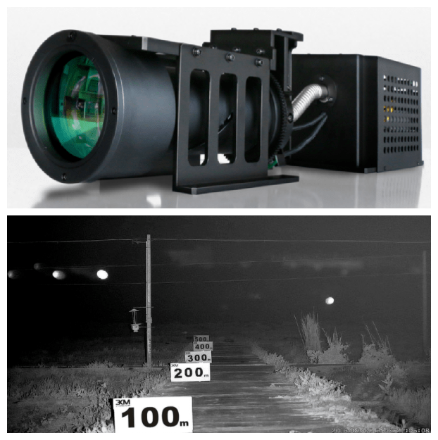 傳統(tǒng)LED最遠能夠實現百米級照明,而激光能達到千米級。激光光源方向性好、光束質量高,能輕松將百瓦級光功率耦合進百微米級直徑的光纖中,方便鏡頭整形設計,從而實現遠距離傳輸,如鐵路、高速公路、海岸線、邊境、油田等場景的遠距離夜視安防照明。
