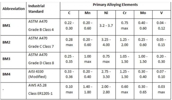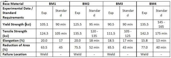 BM4焊件不符合BM4母材要求的原因是該母材與焊接材料匹配度過(guò)高。ER120S-1的最小抗拉強(qiáng)度為120ksi,而BM4的最小抗拉強(qiáng)度為175ksi。
