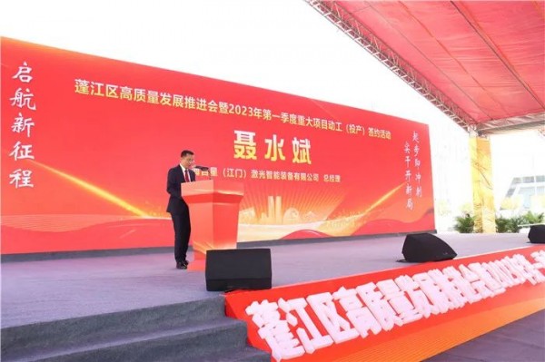 蓬江會(huì)場(chǎng)在華南激光谷舉行,聶總受邀發(fā)表致辭,感謝市委、市政府,區(qū)委、區(qū)政府對(duì)海目星的信賴和支持,對(duì)蒞臨現(xiàn)場(chǎng)的領(lǐng)導(dǎo)表示歡迎。作為江門市蓬江區(qū)重點(diǎn)打造的激光龍頭企業(yè),海目星將不負(fù)眾望,積極響應(yīng)政府號(hào)召,助力蓬江加快現(xiàn)代化產(chǎn)業(yè)體系建設(shè),為蓬江乃至江門的高質(zhì)量發(fā)展注入強(qiáng)勁動(dòng)力。