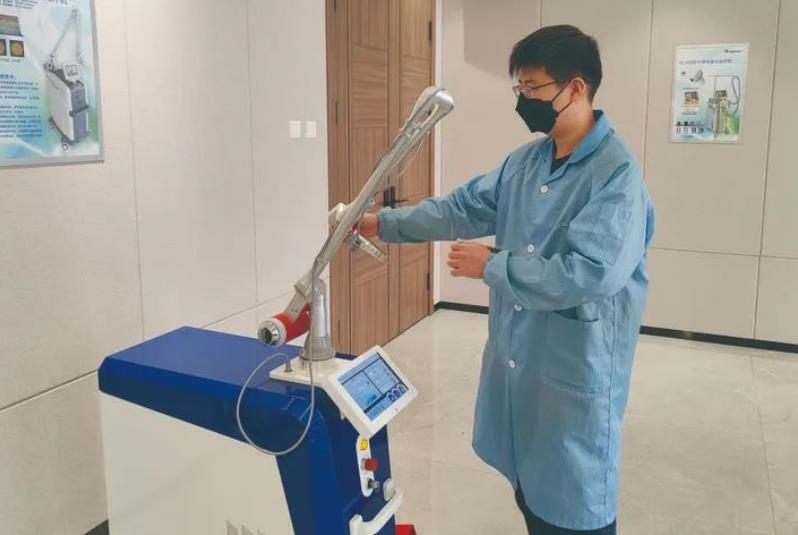 我市堅(jiān)定不移做大做強(qiáng)民營(yíng)經(jīng)濟(jì)的具體行動(dòng)計(jì)劃、“真金白銀”的惠企政策讓科英激光的員工們無(wú)不歡欣鼓舞。1月30日,在產(chǎn)品開(kāi)發(fā)部,研發(fā)工程師小孫正在調(diào)試公司最新獲批的首個(gè)國(guó)產(chǎn)超皮秒激光KL-M(P)型Q開(kāi)關(guān)Nd:YAG皮秒激光治療機(jī)?!斑@款設(shè)備主要是去除文身及色素治療,由于其峰值功率高、照射停留時(shí)間短,疼痛感也會(huì)減輕?!毙O說(shuō)。