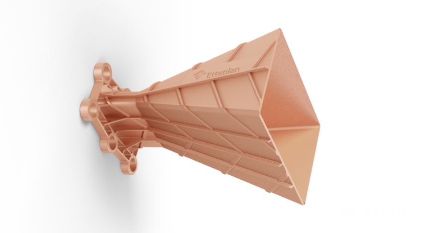 △3D打印的純銅喇叭天線(粘結(jié)劑噴射技術(shù)制造),圖片來(lái)自Digital metal