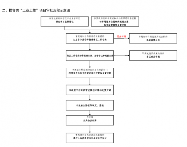 2.需突破《管理規(guī)定》中關(guān)于新增廠房建筑面積出租比例、貢獻基準建筑面積核算規(guī)定的項目,具體審批流程如下: