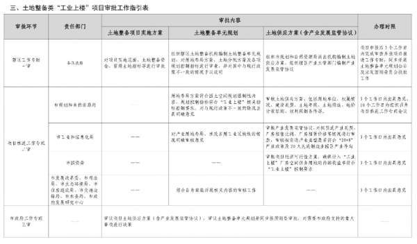 土地整備項目實施方案尚未完成審批的“工業(yè)上樓”項目, 按土地整備類項目類型審批。各區(qū)政府可同步推動土地整備年度計劃、土地整備項目實施方案、土地整備單元規(guī)劃、土地供應(yīng)方案的制定、審查、公示和報批等工作,進一步提高行政審批效率。
